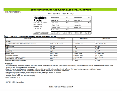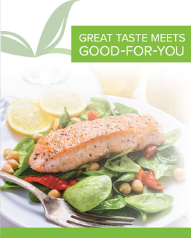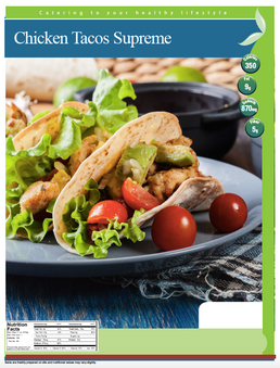 Over 15 nutrient analyzed complete menu items that all meet the latest guidelines for healthy eating. All menu items come with associated recipes Every menu item has a matching point of sale sign with professional photographs and an FDA format approved nutrient label